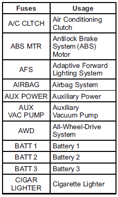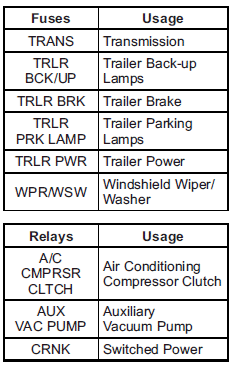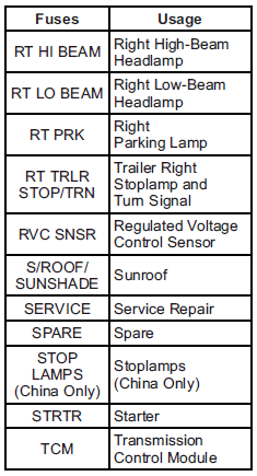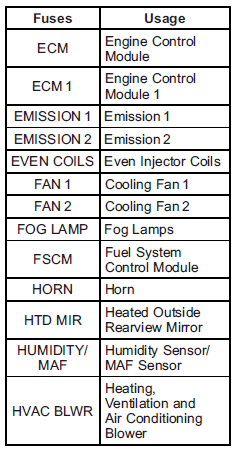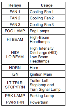 The vehicle may not be equipped with all of the fuses, relays, and features shown.