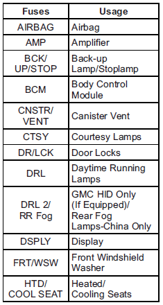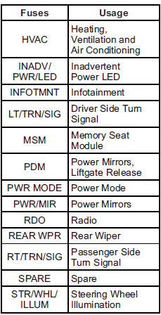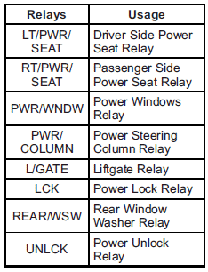 The vehicle may not be equipped with all of the fuses, relays, and features shown.