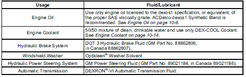 Buick Enclave: Recommended Fluids and Lubricants