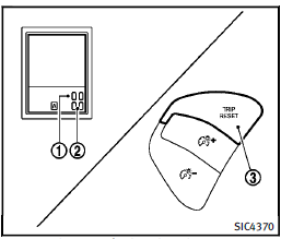 The odometer 1 and twin trip odometer 2 are displayed on the dot matrix liquid crystal display when the ignition switch is in the ON position. The odometer records the total distance the vehicle has been driven. The twin trip odometer records the distance of individual trips. Changing the display: Pushing the TRIP RESET switch 3 at the bottom left of the combination meter panel changes the display as follows: TRIP A ? TRIP B ? TRIP A Resetting the trip odometer: Pushing the TRIP RESET switch3 for more than 1 second resets the trip odometer to zero. Average fuel economy and distance to empty information is also available. (See “Dot matrix liquid crystal display” later in this section.)