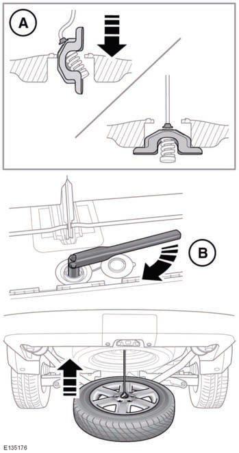 Do not use power tools to raise the spare wheel. Doing so may damage the mechanism.