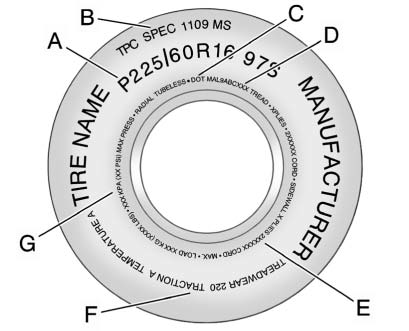 (G) TPC Spec (Tire Performance Criteria Specification): Original equipment tires designed to GM's specific tire performance criteria have a TPC specification code molded onto the sidewall.